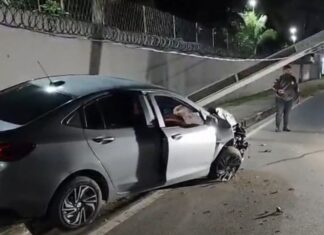 Carro colide com poste e deixa trânsito afetado na Avenida das Torres em Manaus
