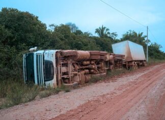 Na tarde desta sexta-feira (17), uma carreta-baú carregada com pneus tombou no km 479 da BR-319, no chamado “Trecho do Meio”, após forte chuva...