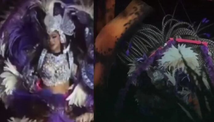 Em vídeo, é possível ver o exato momento em que a alegoria começa a descer e Thaísa perde o equilíbrio.