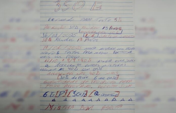 O material descrevia termos como “de peixe”, possivelmente uma referência a um tipo de cocaína mais pura e cara. Substâncias como “café” e “creatina” eram mencionadas como parte do processo de adulteração para expandir a droga, embora ainda não se saiba se esses nomes representam os produtos reais ou códigos para outros elementos.