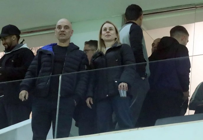 No estádio, Moraes foi visto em um dos camarotes, acompanhado do presidente interino do Corinthians, Osmar Stábile.