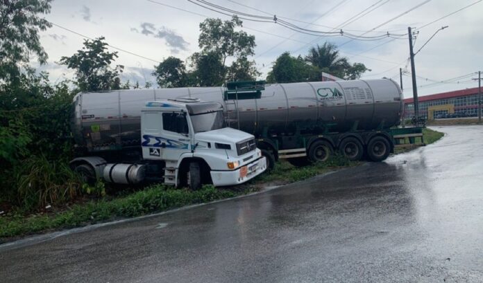 Uma carreta desgovernada saiu da pista e invadiu uma área de mata na manhã deste sábado (13), na Avenida Cosme Ferreira, próximo à saída da Colônia Antônio Aleixo, na Zona Leste de Manaus. O acidente mobilizou curiosos, mas não deixou feridos.