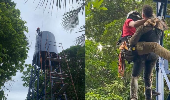 Na última segunda-feira (29), o Corpo de Bombeiros Militar do Amazonas (CBMAM) resgatou dois homens que ficaram presos no alto de uma caixa d’água após se intoxicarem durante a pintura do equipamento, na Rua das Pedras, bairro Tarumã-Açu, zona Oeste de Manaus.