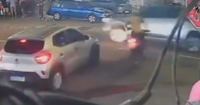 Os registros mostram o suspeito trafegando em alta velocidade em uma motocicleta, aparentemente em fuga. Ao chegar ao cruzamento da Rua J com a Rua Sete de Setembro, ele acabou sendo atingido por uma picape que atravessava a via.