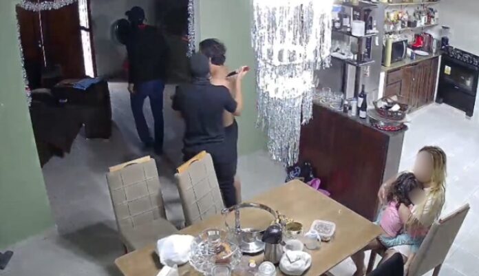 Nas gravações, é possível ver o momento em que os bandidos reúnem os moradores na sala, incluindo uma mulher com uma criança no colo. O proprietário do imóvel, um empresário, foi o principal alvo das agressões e chegou a receber uma coronhada na cabeça. Sob ameaça de faca, ele foi obrigado a ir para o banheiro, mas resistiu e, devido ao nervosismo e à violência, acabou desmaiando diante da família.