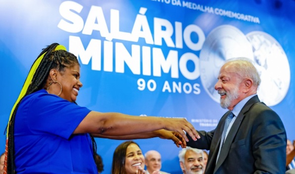 A cena ocorreu durante cerimônia que celebra os 90 anos da criação do salário mínimo. No evento, foi lançada uma medalha comemorativa.