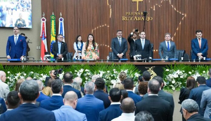 A Câmara Municipal de Manaus (CMM) participou, nesta terça-feira (3 de fevereiro), da solenidade de abertura dos trabalhos da 4ª Sessão Legislativa, da Assembleia Legislativa do Estado do Amazonas (Aleam). A cerimônia foi realizada no Plenário Ruy Araújo e marcou o início oficial do ano legislativo estadual, com a leitura da Mensagem Governamental pelo governador Wilson Lima (União Brasil).