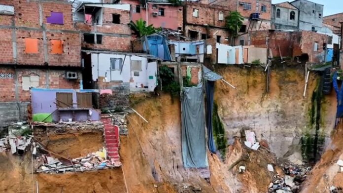 Imagens aéreas mostram que novas casas correm risco de cair a qualquer momento. A falta de intervenções efetivas por parte do poder público tem aumentado a insegurança e o temor da população.