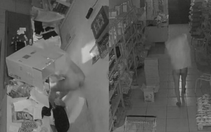 No último domingo (8), um homem foi flagrado completamente nu e com uma caixa na cabeça ao invadir um mercadinho em Oeiras, no sul do Piauí. O crime ocorreu durante a madrugada e foi registrado por câmeras de segurança do estabelecimento.