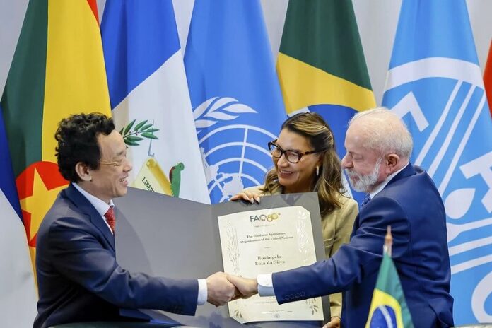 O reconhecimento foi concedido pelo diretor-geral da organização, Qu Dongyu, e destaca a atuação de Janja em iniciativas ligadas ao combate à fome e à insegurança alimentar.