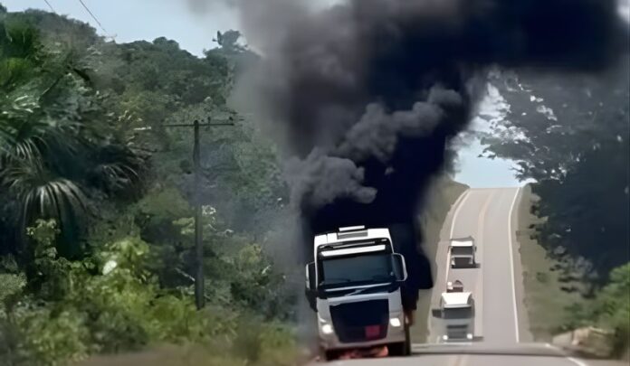 Imagens de motoristas que passavam pelo local mostraram o veículo envolto em densa fumaça preta enquanto se movia lentamente pela rodovia. Segundo o Corpo de Bombeiros Militar do Amazonas, o fogo pode ter sido causado pelo superaquecimento dos freios, que provocou o estouro de dois pneus.