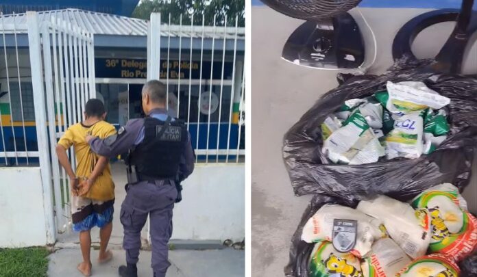 O homem recebeu voz de prisão e foi encaminhado ao 36º Distrito Integrado de Polícia (DIP), onde foi autuado em flagrante por furto.