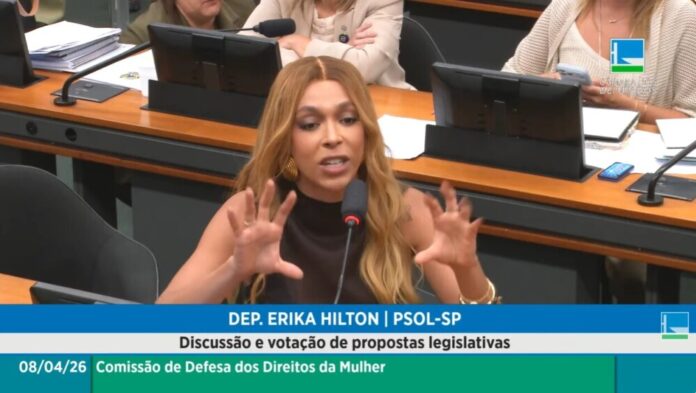 A deputada federal Erika Hilton (PSOL-SP) participou nesta quarta-feira (8) de um debate na Comissão da Mulher, na Câmara dos Deputados, e respondeu a críticas sobre sua atuação como presidente dos trabalhos.