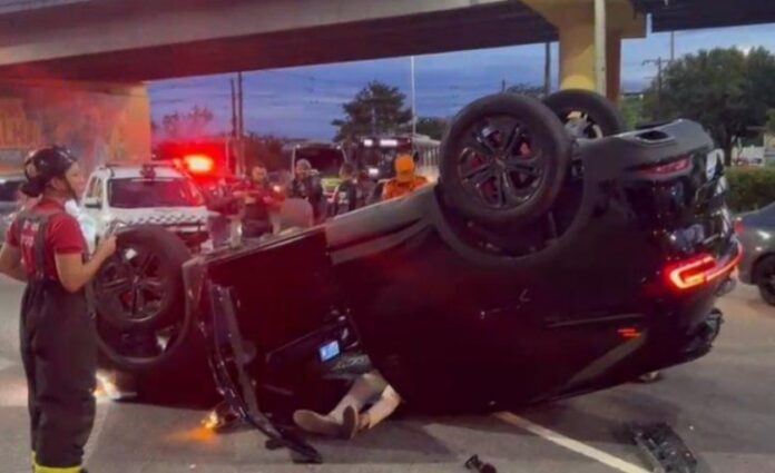 Segundo a polícia, o motorista perdeu o controle do veículo, de placa TAB2H41, colidiu contra uma mureta de concreto e, em seguida, capotou várias vezes.