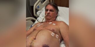 Internado na UTI, Bolsonaro mostra imagem do corte cirúrgico