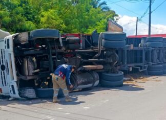Detran-AM remove caminhão e aplica autuações após tombamento na zona leste de Manaus