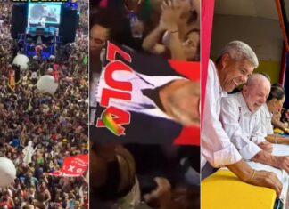 Trio de Salvador grita: “Olê, olê, olê, olá… Lula!” e “Sem anistia!” em apoio...