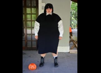 Fantasiada de Wandinha, Thais Carla entra no clima de Halloween