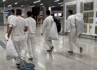 Brasileiros deportados dos EUA desembarcam algemados em Manaus e são soltos