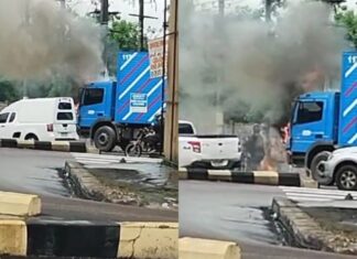 Fogo destrói cabine de caminhão da Bemol no Coroado e trânsito fica congestionado