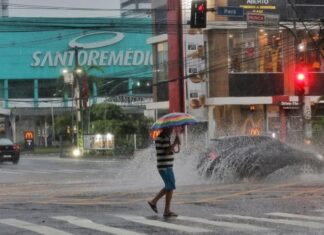 Chuva forte atinge Manaus desde cedo e Defesa Civil dispara aviso de risco
