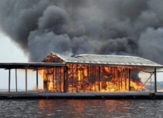 Flutuante é consumido pelo fogo no Tarumã-Açu, em Manaus