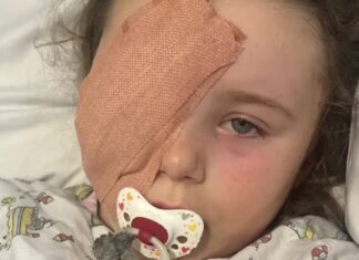 Uma garotinha de 7 anos, Ruby Grainger, perdeu o olho direito após a explosão de um objeto, supostamente a bateria de um vape, em...