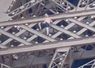 Homem é capturado ao subir a Torre Eiffel pouco antes do fim dos Jogos...