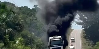 Incêndio atinge caminhão-tanque carregado com 50 mil litros de combustível na...