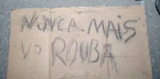 Homem é amarrado e deixado ao lado de placa com ameaça...