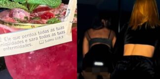 Mulher quebra copo no rosto de aniversariante dentro de bar após...