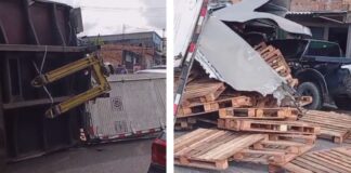 VÍDEO: tombamento de caminhão carregado de pallets bloqueia rua na zona...