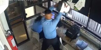 Vídeo mostra homem atacando colega com capacete após briga em portaria