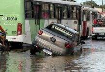 Vazamento de água provoca colapso em via e arrasta veículo em...