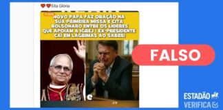 É falso que papa Leão XIV tenha citado Bolsonaro em oração...