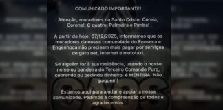 Facção TCP ordena fim de taxas e serviços clandestinos em territórios...