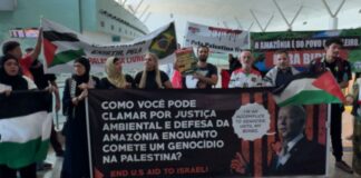 Em Manaus, organização palestina lidera manifestação contra chegada de Biden