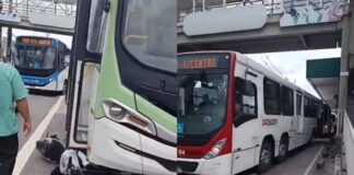 Colisão deixa moto debaixo de ônibus e trava trânsito na Constantino...