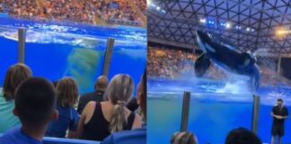Vídeo: Baleia faz cocô durante apresentação e joga água suja na...