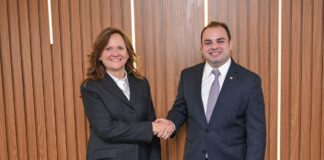 Presidente da Aleam, Roberto Cidade, explica à ministra alemã sobre a...