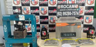 Arma, maconha tipo skunk e prensa hidráulica são apreendidas pela Rocam...