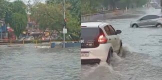 Temporal deixa Avenida Brasil, na Compensa, tomada pela água nesta terça-feira
