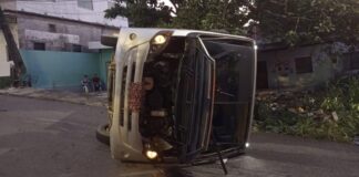 Motorista fica ferido após ônibus bater em poste e tombar em...